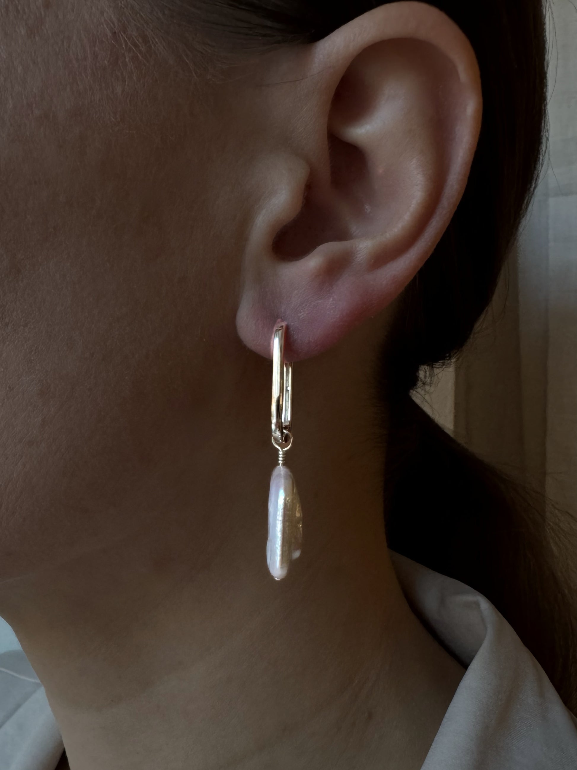 Opdag den elegante Boxy Edge sølvørering fra By Claudia Rex. Håndlavet kreol med unik barok ferskvandsperle – et tidløst smykke, der tilføjer karakter til enhver stil.